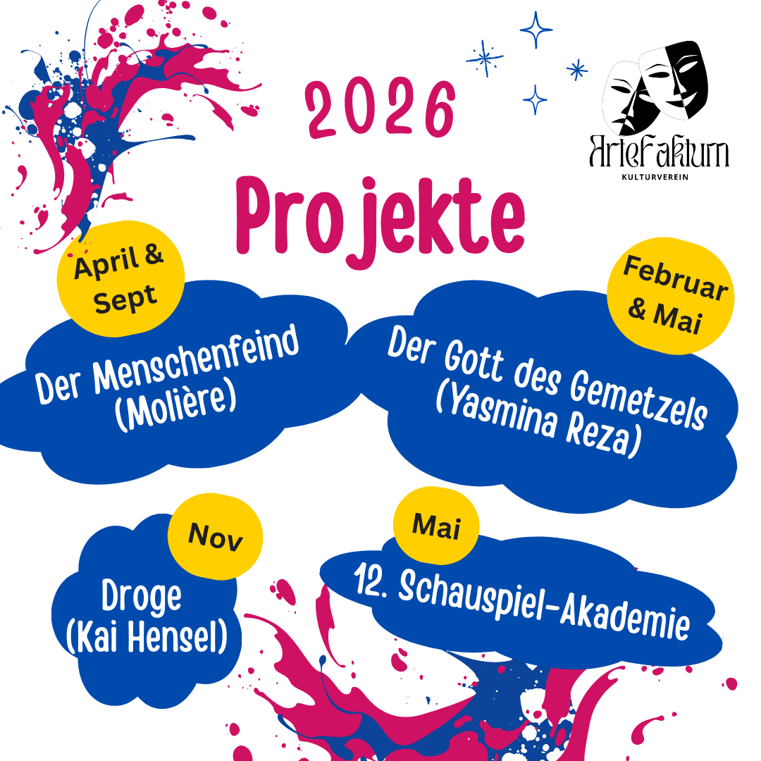 ATheaterWien, der Wiener Landesverband für außerberufliches Theater, initiiert erstmals eine gemeinsame Theaterproduktion seiner Mitgliedsgruppen & -vereine – und 4 Mitglieder des ArteFaktum Kulturvereins sind dabei! Letzte Woche hat nun ein erstes Kennenlernen mit Leseprobe stattgefunden – es werden Szenen von Herbert Rosendorfers „Vorstadtminiaturen“ auf die Bühne gebracht. Regie führt Alexander Kuchinka, der auch schon zahlreiche unserer Produktionen begleitet hat. Aufführungen finden von 18.-20. Juni 2026 im AERA statt. Details folgen…